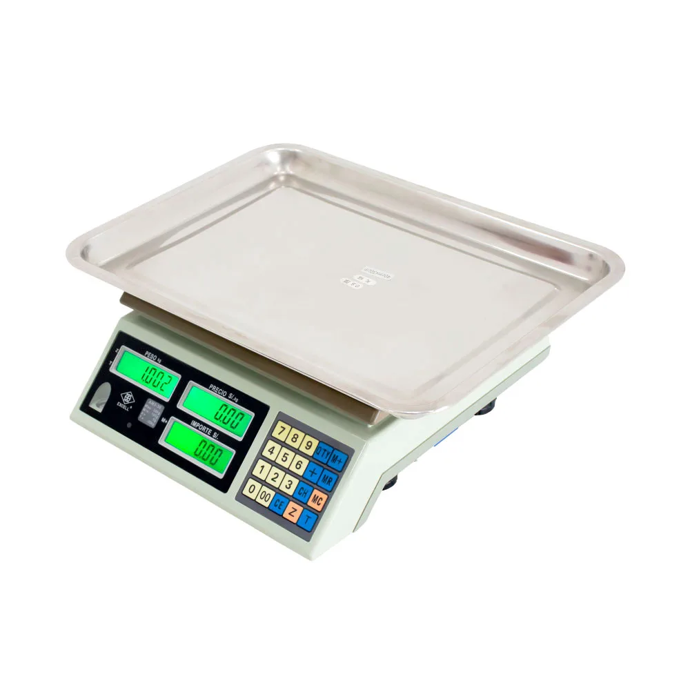 - Doble pantalla delantera y posterior para fácil lectura para operador y cliente.