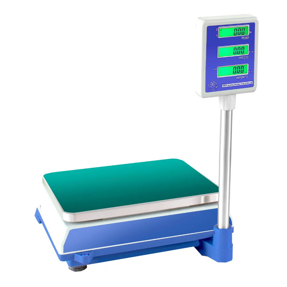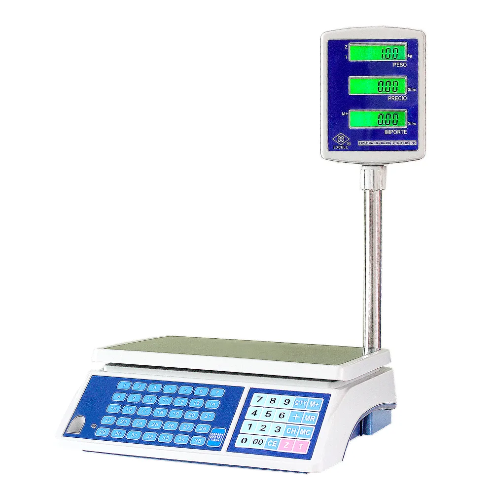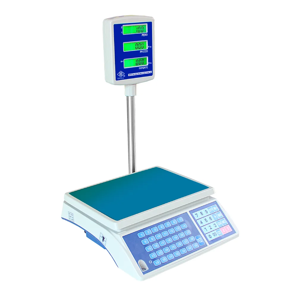 - Doble pantalla delantera y posterior para fácil lectura para operador y cliente.