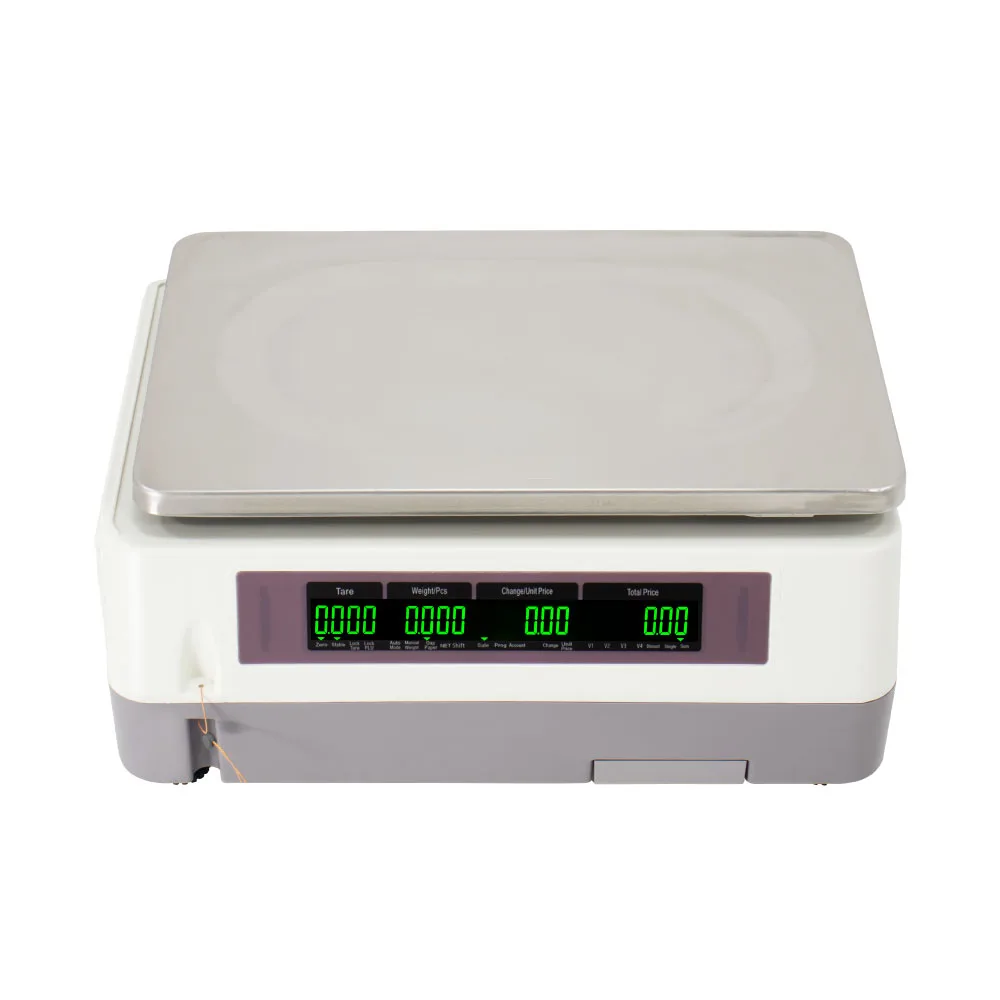 - Pantallas LCD peso, importe unitario, cálculo de suma total.